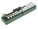 IIT 70450, IIT 20 PC 3/8" Drive Metric Standard & Deep Well 6-Point Socket Set. Includes 9 standard sockets, 8 deep well sockets, 2 extension bars, reversible ratchet handle and durable steel case. Manufacturer's limited lifetime warranty Specifications: 1 PC 8" Reversible ratchet handle with 3/8" drive - 9 PC Standard Sockets Metric (mm): 9, 10, 11, 12, 13, 14, 15, 17, 19 - 8 PC Deep Well Sockets Metric (mm): 10, 11, 12, 13, 14, 15, 17, 19 - 2 PC Extension Bars: 1-3/4" & 3" - Steel storage case ...